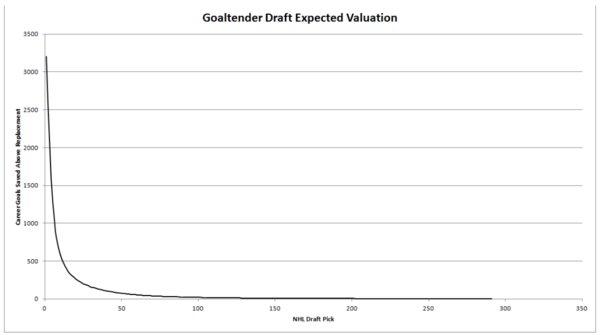 Essentially this indicates that there is very little Expected Value in any goaltender chosen after the 2nd round of the NHL entry draft, and most good starters will be first round selections.