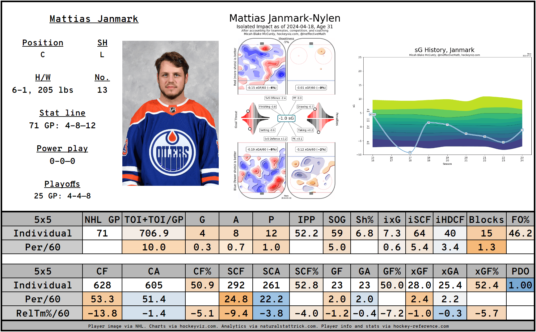 Welcome to my annual player review series, where I dive into the Edmonton Oilers season player-by-player. We’ll look back at the season that was, what kind of impact each player had, and what we could see from them next season. You can read about the analytics behind my analysis here.