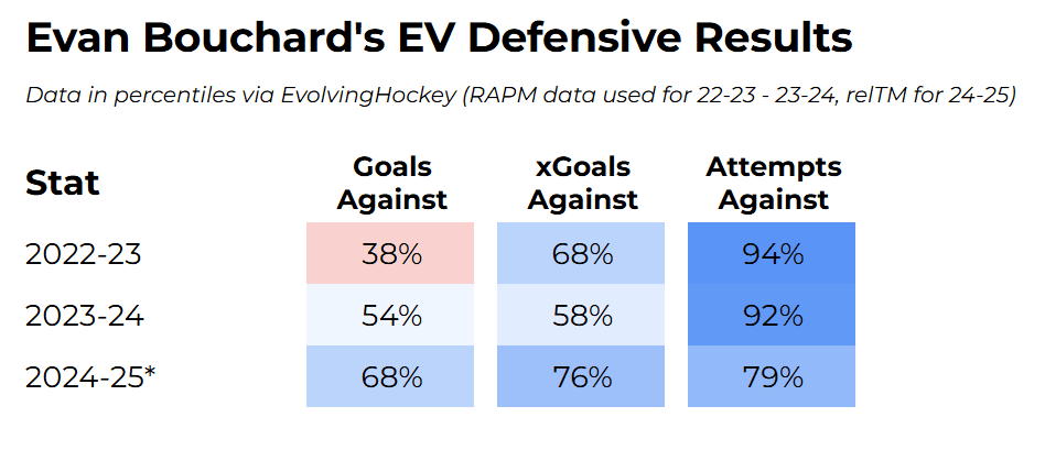 In other words, Evan Bouchard is comfortably a positive-impact defensive player.