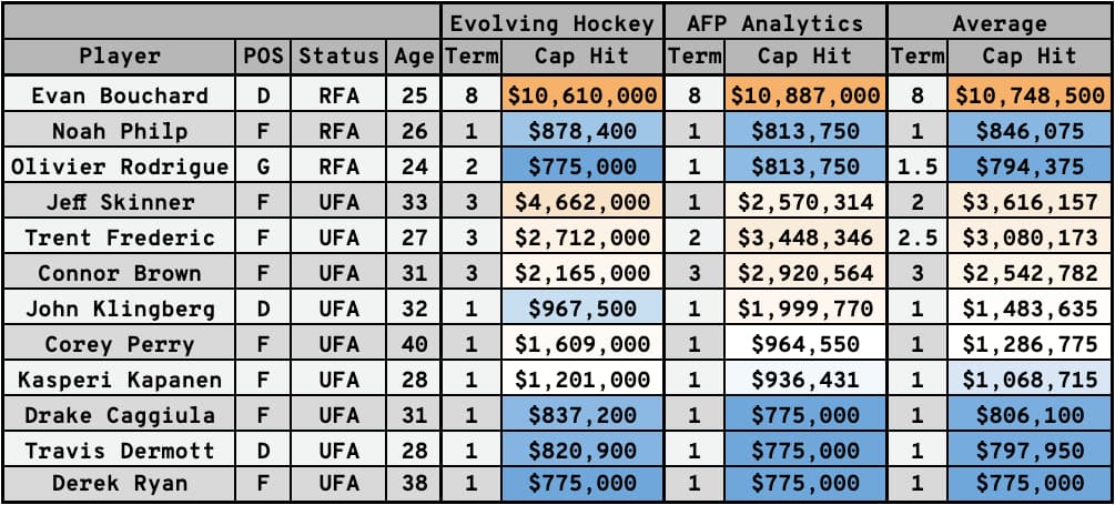 Let’s dive into what the Oilers’ free agent projections look like, courtesy of Evolving Hockey and AFP Analytics, and if they should bring them back or let them walk.