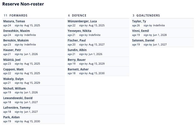 Luca Munzenberger, Joel Maatta, and Tomas Mazura each wrapped up their fourth and final year of NCAA eligibility in 2024-25. Under NHL rules, teams retain the rights to drafted NCAA players until August 15 following their fourth college season.
