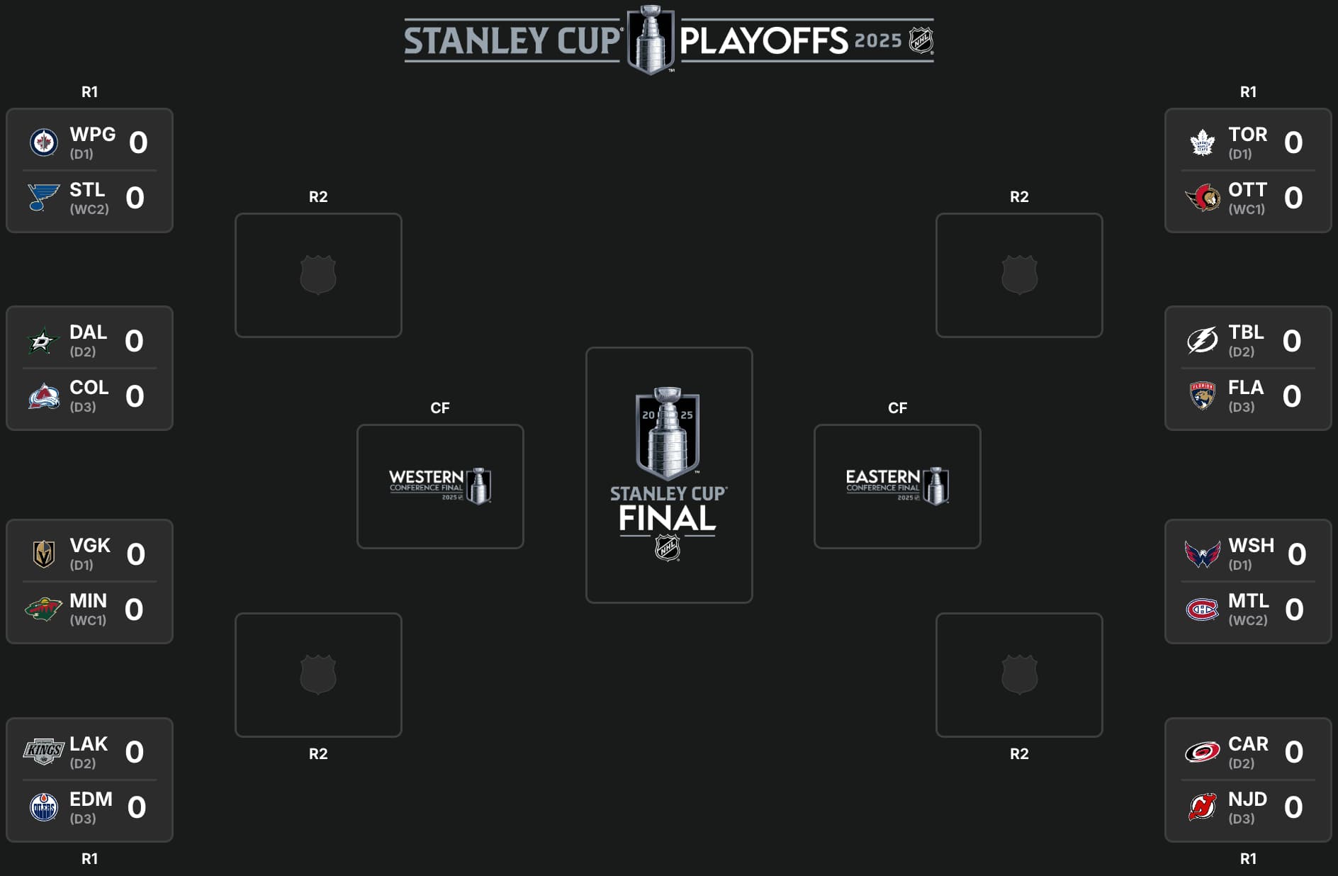The other side of the bracket in the West will see the Winnipeg Jets face host the St. Louis Blues and the Dallas Stars host the Colorado Avalanche. The winner of those series will meet in Round 2, while the winner there would — if the Oilers can down the Kings and one of the Golden Knights or Wild — in the Western Conference finals.