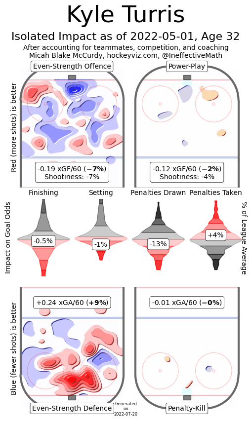 He numbers paled in comparison to that of his teammates and his isolated impacts painted a stark picture. He provided offence at a seven percent rate below league average and defence at a nine percent rate below league average. The stuff just isn’t there anymore for him.