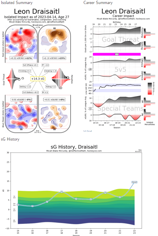 But what’s becoming more and more apparent from both players is their commitment to a well-rounded game. As their impact charts above show, both players are well above elite first-line talents and have seen growth in their defensive play. For McDavid, the corner turned seasons ago, but for Draisaitl, last year marked a significant increase in his defensive impact.