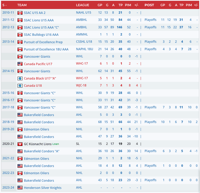 Tyler Benson Career Statistics…