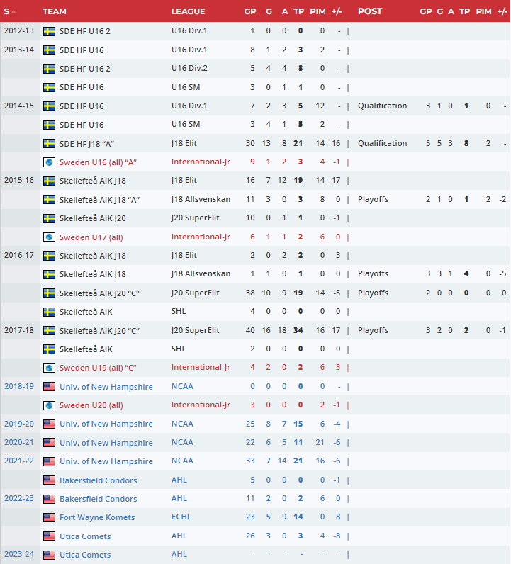 The right-shot center turned pro after his third collegiate season with the University of New Hampshire for the 2022/23 season. As the stats illustrate, Engaras has not produced a lot of offence at any level. His rookie year in the AHL had him total 5-0-5 in 37 games. He also played a large portion of the year in the ECHL with Fort Wayne where he tallied 5-9-13 in 24 games.