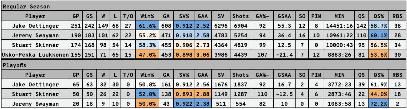 But now he’s established himself as a big league goaltender, helping take the Oilers to back-to-back Stanley Cup Finals. How does he stack up to the rest of his class?