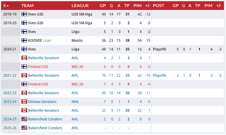 The Senators moved on from Jarventie the following off-season, sending him to Edmonton in the previously mentioned deal for prospects Xavier Bourgault and Jake Chiasson. The Oilers didn’t get much of a look at the skilled Finn, as he appeared in only two games for the Bakersfield Condors in 2024-25.