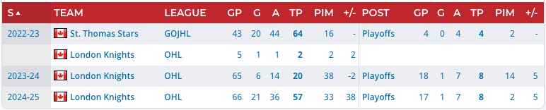 As a rookie in 2023-24, Nicholl chipped in six goals and 20 points over 65 games for the London Knights. He saved his best for the playoffs, posting eight points in 18 games as the Knights captured the OHL Championship. They fell short in the Memorial Cup, but that playoff performance helped boost the young forward’s draft stock.