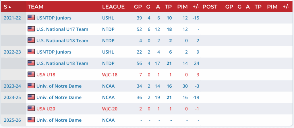 Fischer still has two years of NCAA eligibility, so there’s no urgency to sign him to an entry-level deal. He’ll again play top-four minutes for Notre Dame in 2025-26, and the hope is that he continues to grow offensively while tightening up his defensive game.