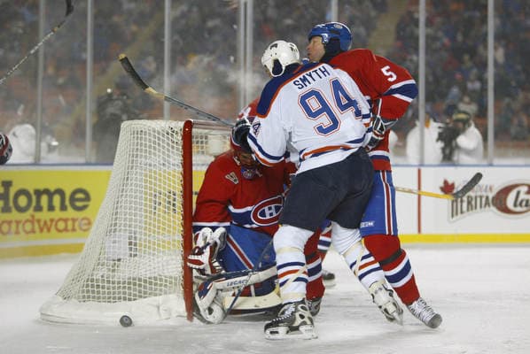 An idea that began in 2001 came to fruition over two years later when the Oilers and Canadiens, and their alumni teams, played two games on a frigid November day. I was lucky enough to be in the stands for the games. I wore insulated coveralls, long underwear, a balaclava, neck warmer, and huge mitts. I was lucky that I was accredited and was able to warm up in the media lounge between games. It was such a cool experience to see the football field transformed into a hockey arena. I think what made it so great was how anyone in attendance could relate to playing outdoors. I loved playing on the outdoor rink as a young boy, and I still love it today when I get to skate outside. It is hard to explain why it feels so good, but it does. I coach U11, and we have scheduled outdoor practices in January, February, and March. I did it last year and the kids loved it. The sounds of the puck against the boards, and your skates on the ice, are just different outdoors than inside.