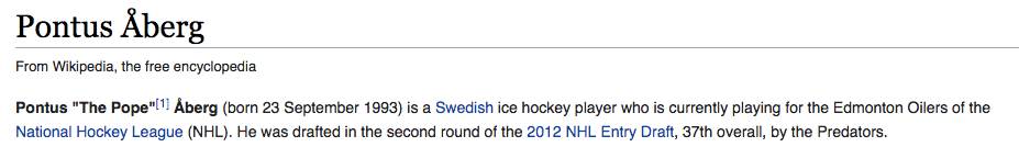 Looks like Wikipedia also dubs him as “The Pope” for some reason…. so that’s something we can work with, right? Thanks to FatDad on Twitter for finding this. Pontus Aberg currently has a $650K cap hit for two more years, so it frees up a little bit of cap space by moving Letestu out.