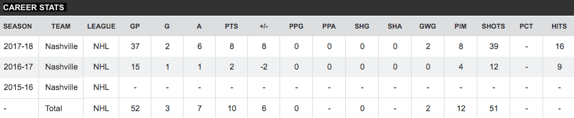 Coming back to the Oilers is left winger, Pontus Aberg. Pontus has put up two goals and eight assists with the Preds in 37 games this year and played four games in the AHL earlier in the season. Although I don’t know much about Aberg, it looks like he’s known to score some pretty fancy goals whenever he does score.