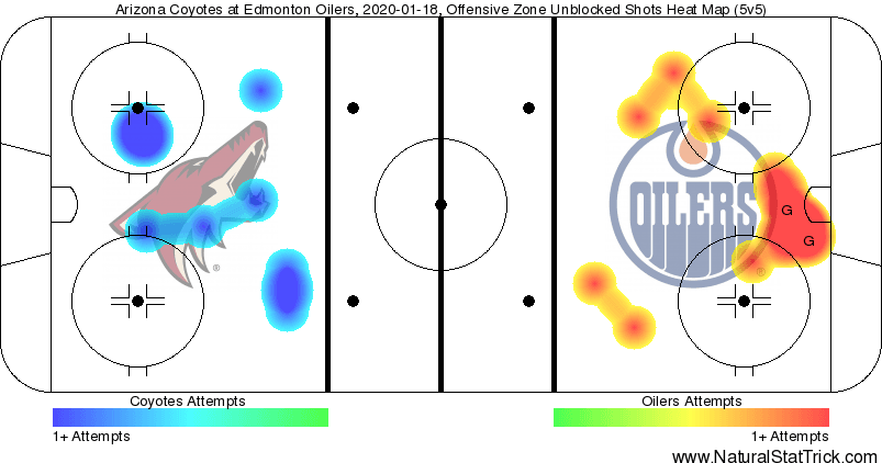 @Mike Smith earned his fifth straight win with an unspectacular .900 SV%, but two of the goals-against came on the Oilers’ for more unspectacular home penalty kill. He was perfect in the High Danger areas, only the lone 5v5 goal from a very good Taylor Hall shot.