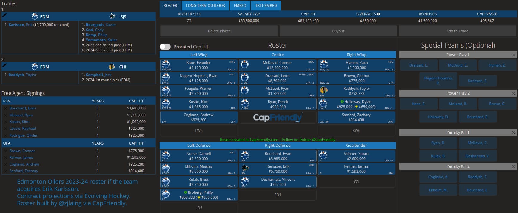 Is there a world where the Oilers could still acquire him? Sure. Let’s go through a little exercise to see what the Edmonton Oilers’ offseason could look like if they wanted to acquire Karlsson and push their chips all in chasing the 2024 Stanley Cup.