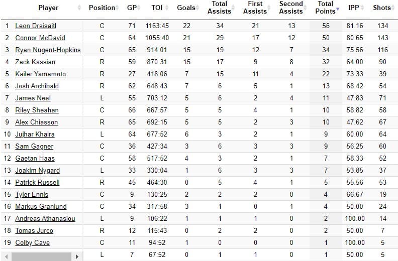 The disparity in offensive production from the Oilers is huge. Obviously having McDavid and Draisaitl combining for over 200 points on their own is huge, but the truth is that the Oilers have a large lack of production from the bottom of their lineup.