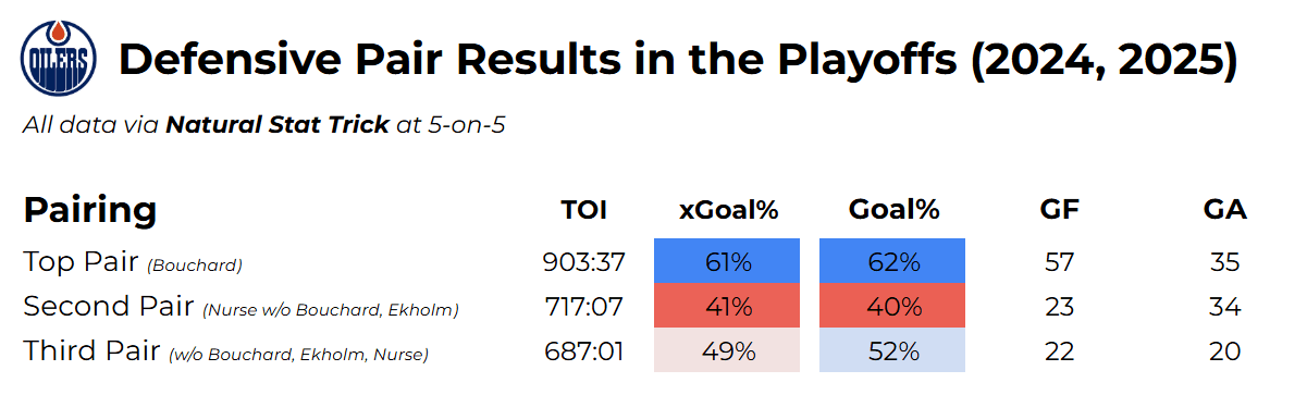 Here is a closer look into Edmonton’s defensive pair results over the past two playoffs: