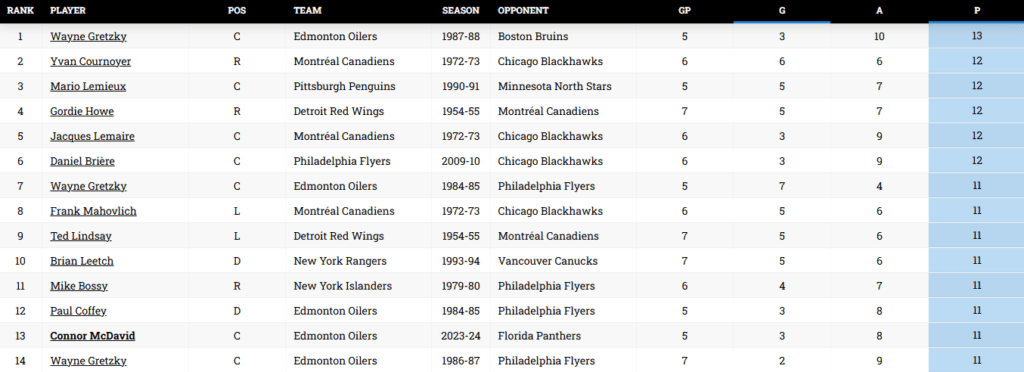 — McDavid has 11 points in the Final, which is two points back of the record set by Wayne Gretzky in 1988 with the Oilers.