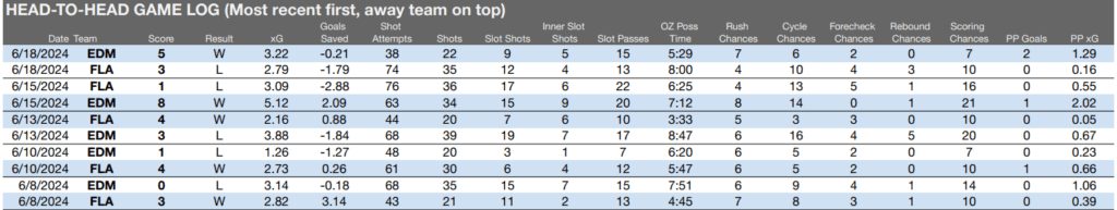 Edmonton leads in every category except shot attempts and forecheck chances.