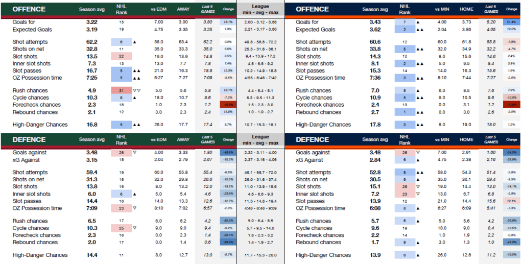 Minnesota is playing their third game in four nights and second of a back-to-back after losing 2-0 in Vancouver last night. The Wild won’t play run-and-gun with the Oilers per se, but they are very good at creating high-danger chances.