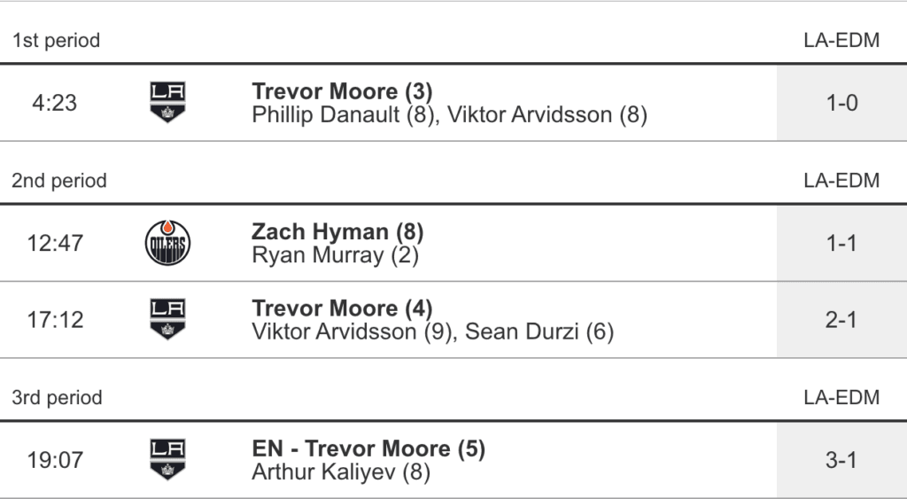 Third straight loss at Rogers Place. Final Score: 3-1 Kings