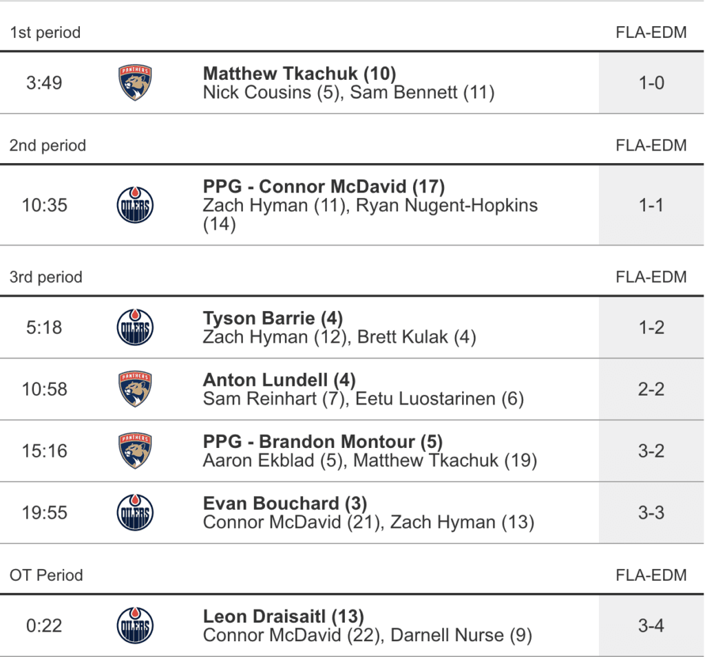 - Leon Draisaitl finished the game (4-3) in overtime after he and McDavid broke into the offensive zone on an odd-man rush and executed the play perfectly. Connor to Leon and then it’s game over.