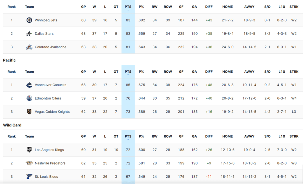 — On December 20th, the Vegas Golden Knights were first in the Pacific Division, and the Western Conference, with 47 points in 33 games (.712 P%). Vancouver was second in both with 46 points (.697P%). The Edmonton Oilers trailed Vegas by 20 points and sat fifth in the Pacific with 27 points (.466P%) and ranked 12th in the West. Grabbing a wildcard spot seemed like the best-case scenario for the Oilers. At the time, I didn’t see them getting back in the race for home ice advantage, but fast forward 75 days and that is exactly where the Oilers find themselves.