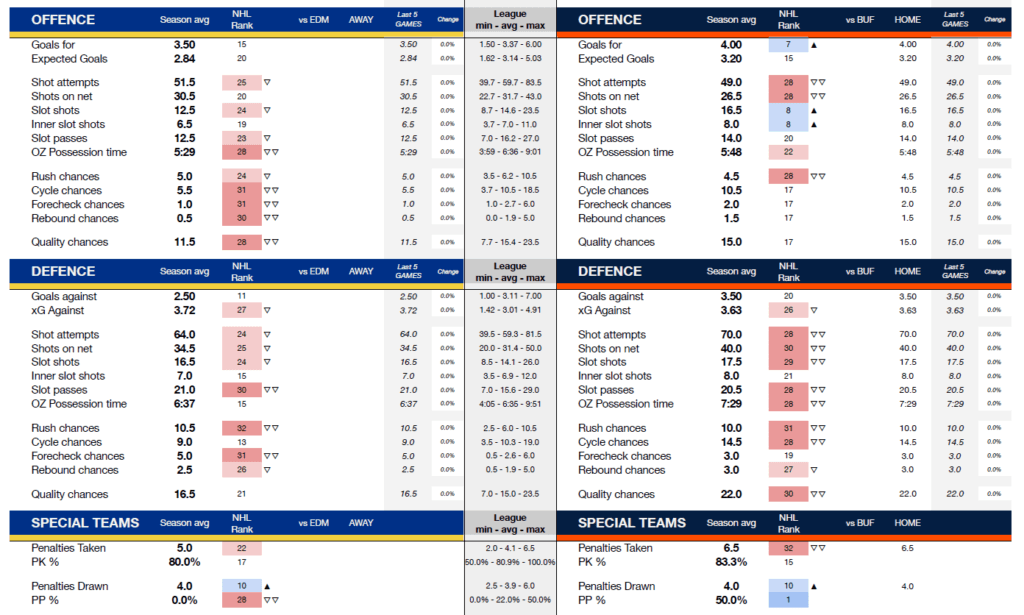 Edmonton is 30th in quality chances allowed, 31st in chances off the rush and 30th in shots against. When Jay Woodcroft arrived last season their rush chances against dropped significantly. I expect them to tighten up, get more consistent back pressure and play tighter as a five-man unit. If they don’t, they will continue to bleed scoring chances.