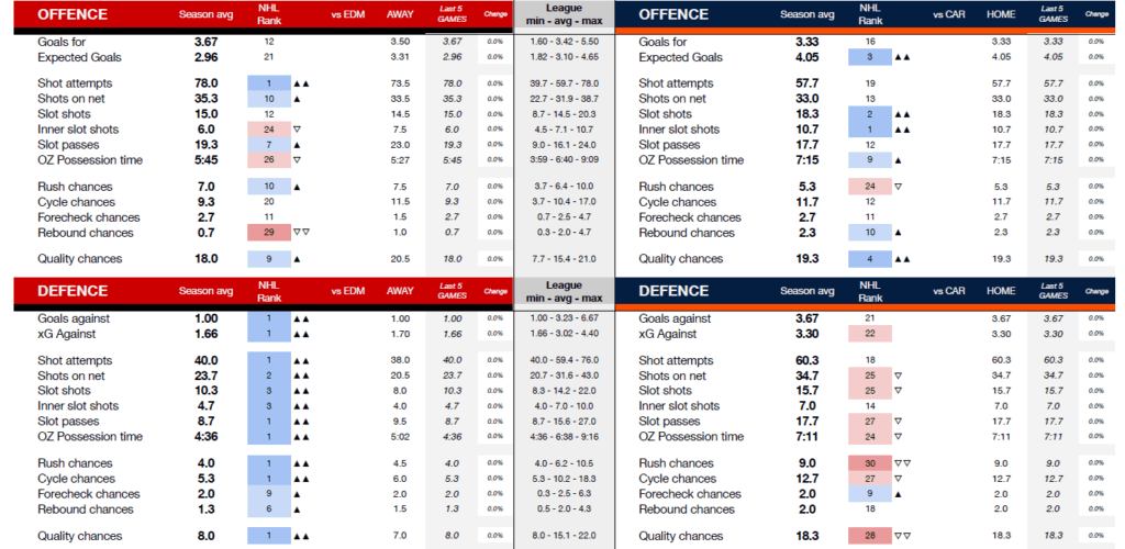 — Contrast that to the Carolina Hurricanes who are averaging three 5×5 goals/game in their three contests. The Canes’ 3.85 GF/60 at 5×5 is third best in the NHL. The top six in Carolina has six 5×5 goals, while the Oilers’ top six has one. It is a cliché, but it is very accurate: When your best players are your best players, usually you win games.