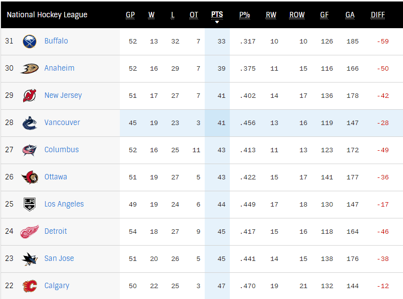 — One positive for the Canucks limping to the finish line is it will improve their chances of having a high draft pick.