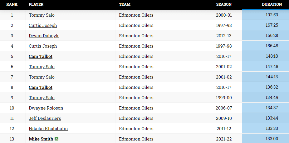 — Smith’s current shutout streak of 133 minutes is 13th longest in Oilers franchise history and he should move up a few spots tonight.