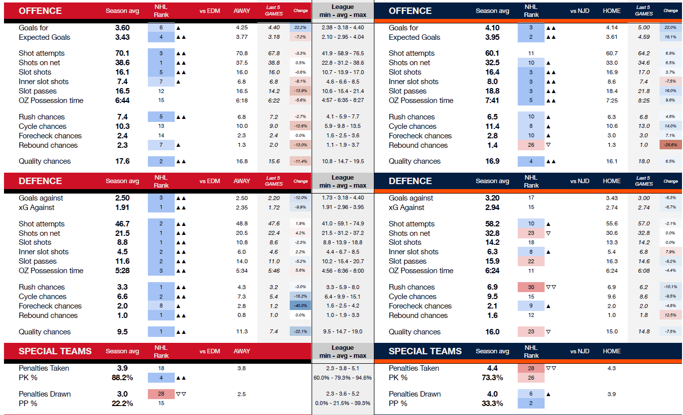 — Edmonton hasn’t been as tight defensively as New Jersey. The Oilers sit 23rd in quality chances against at 16 per game, while the Devils lead the NHL allowing only 9.5. But the Devils have not faced an offence like the Oilers this year.