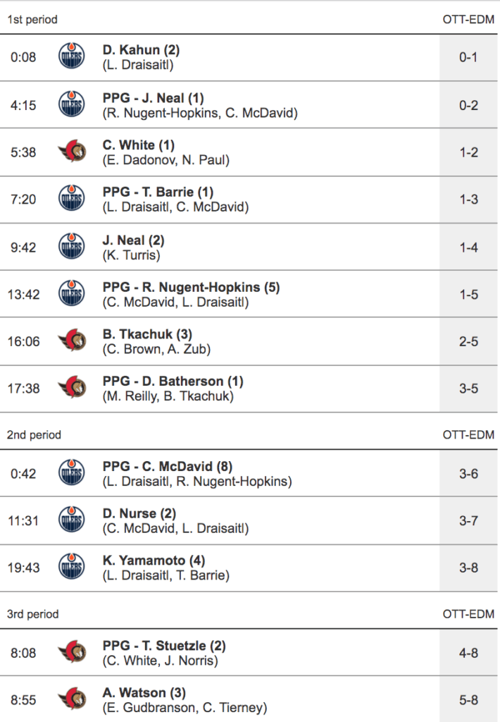 - Say what you will about Ottawa having a lot of poor quality shots, I still don’t like seeing that the Oilers were outshot 38-31 by them.