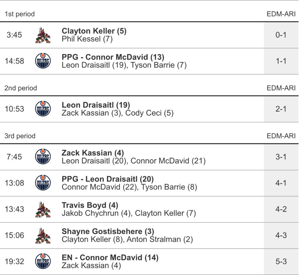 GDB 19.0 Wrap Up: Oilers overcome another slow start with a 5-3 bounce-back win over the Coyotes