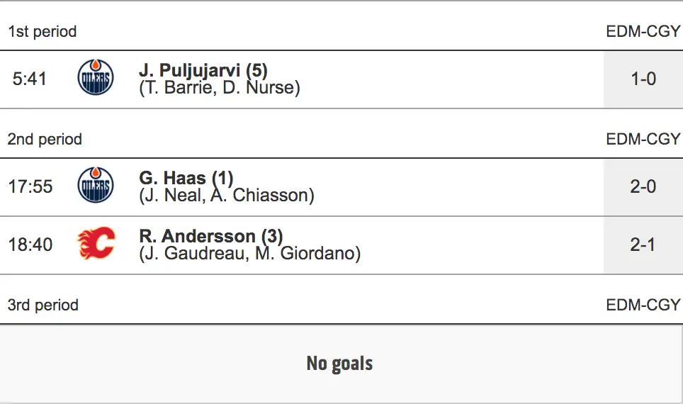- Rasmus Andersson cut the Oilers’ lead in half (2-1) with a snipe of a shot from the slot after Johnny Gaudreau found him with a perfect pass behind the coverage. Andersson had plenty of time and space to get a clean shot off and he made no mistake with the chance.