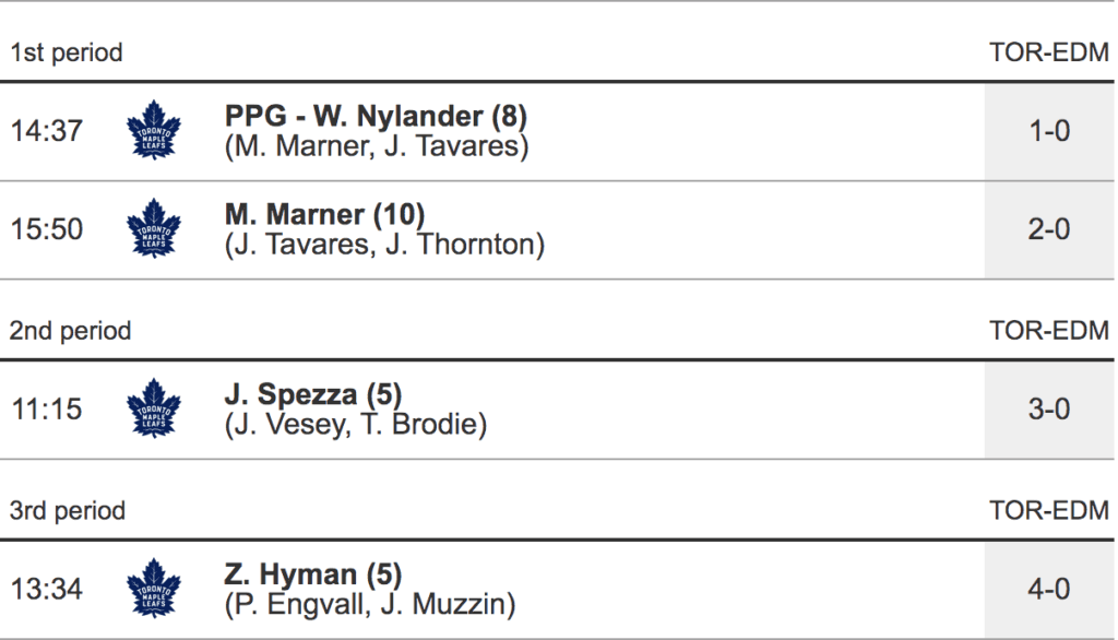 - The goals by Nylander and Marner came in a span of under two minutes which makes that the 11th time the Oilers have allowed that to happen this season. Weird, ugly stat.