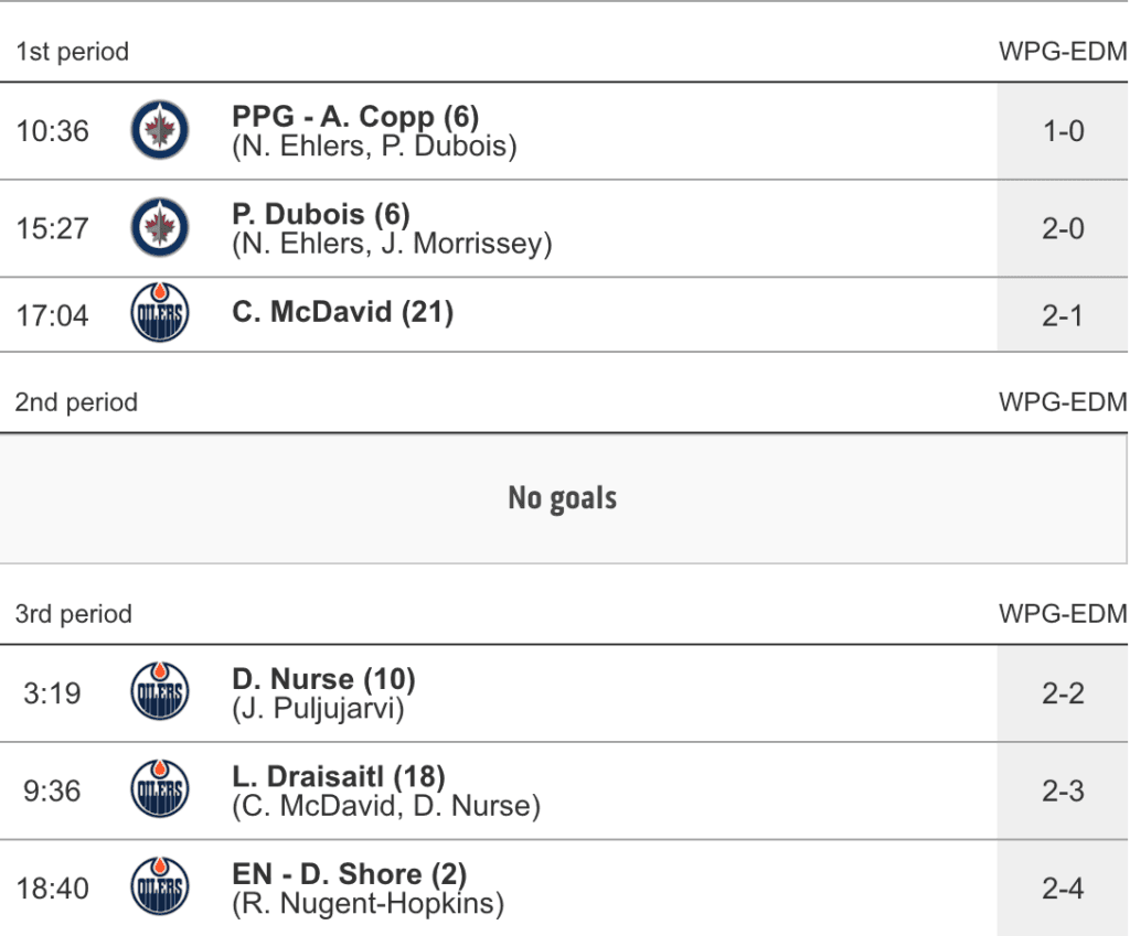 - @Connor McDavid pulled his team back to within one (2-1) after he executed another cheat-code play in the Jets’ zone that saw him circle the net with the puck, weave his way through traffic,