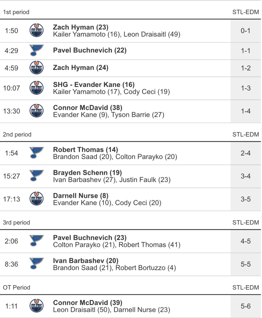 GDB 69.0 Wrap Up: Just the way we drew it up, Oilers extend winning streak with 6-5 OT win over the Blues