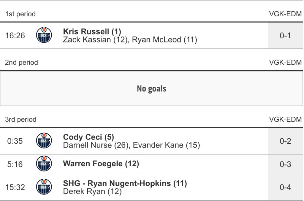 Kick rocks, Vegas. Final Score: 4-0 Oilers