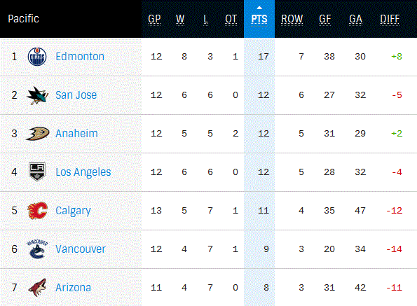 With each passing day, I become more convinced that Oilers fans are no longer able to truly enjoy success. Seriously. I don’t know if it is the ten years of failure, leftover rage from the Hall trade or the litany of acid released on twitter about the team each day. Can you do something for me? Can you put all of those things aside, and look at these standings? Hey, I know an anvil from the sky may cut your car in half and the neighbor’s tree could fall on your house and the Oilers could lose 10-0 today. None of those things have a thing to do with these standings. Enjoy. Please!
