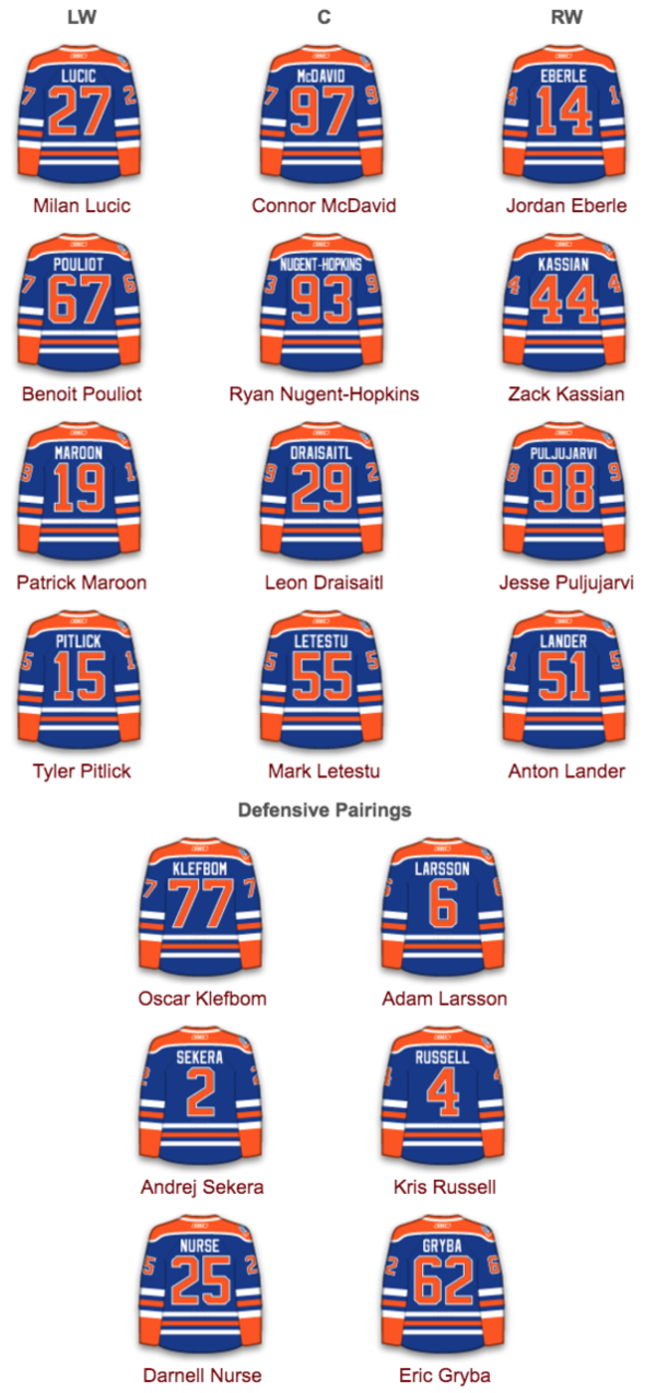 It didn’t take long for Glen Gulutzan to change his defence pairs. You can guarantee the Giordano/Brodie pair will be out against McDavid’s line as often as possible.