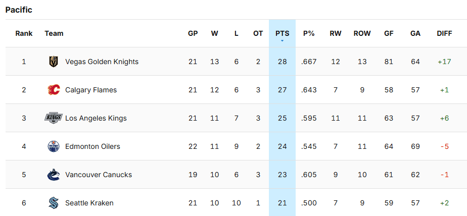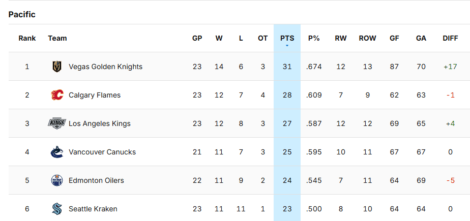 They now have games in hand on Vegas, Calgary and LA and Vancouver got some brutal news as Filip Hronek is going to miss a significant amount of time with an injury. When they return from their short three-game road trip they will play eight of their next nine games on home ice leading up to the Christmas break. Based on their skill and schedule they should be comfortably in a playoff spot when Santa delivers his toys.