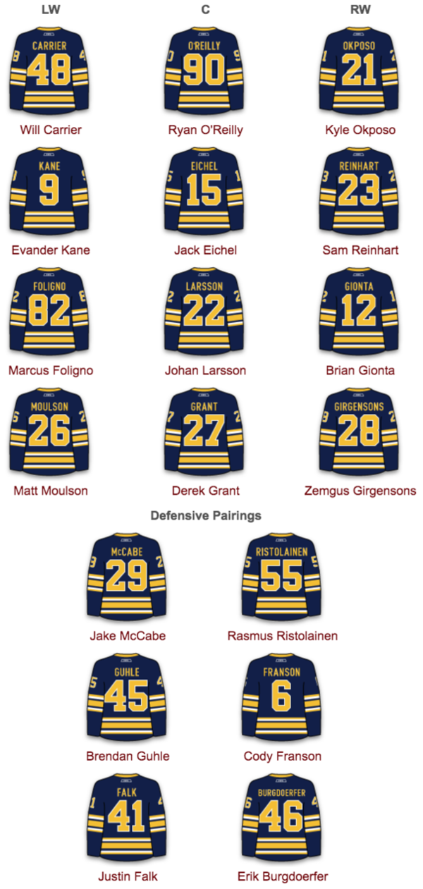 Jake McCabe has 111 games of experience while Justin Falk, Cody Franson and Rasmus Ristolainen round out their D corps. Ristolainen is very good. He played 29:51 last night, while McCabe played 28:52. The Oilers have to attack those two and hope fatigue becomes a factor.