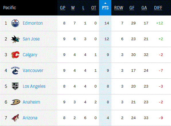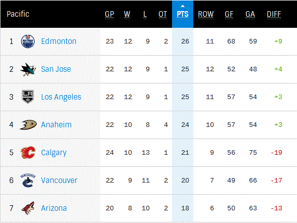This morning, Edmonton sits at No. 7 in the Western Conference, if the playoffs started today the club would play division champion Calgary Flames. However, the truth is this: The Pac-7 is not a strong division, and it is up for grabs—especially considering the plodding pace being presented by the California teams.