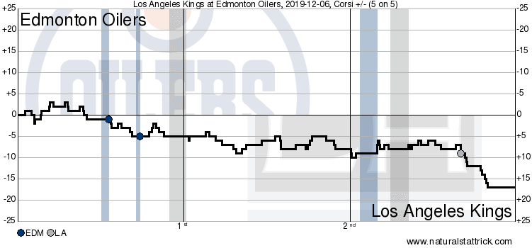Statistically, the game was the Kings’ to lose. They outchanced the Oilers 19-15 overall at even strength and edged them out on high-danger chances 8-6, outshooting Edmonton 36-20 overall and putting up a monstrous 18-shot performance in the first 20 minutes.