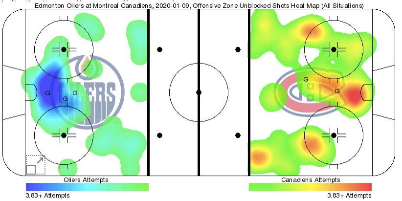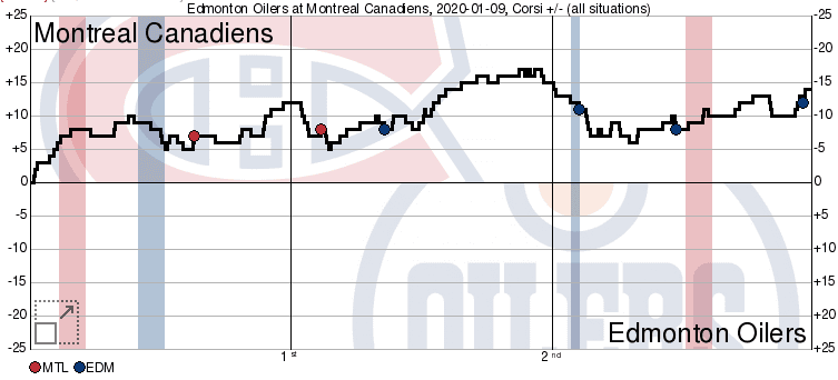 Despite being outshot early, Edmonton did a great job in limited them to low danger areas without giving up any big opportunities. @Joakim Nygard got Edmonton’s best chance of the game thus far with a solid wraparound chance where he used his speed, but it was unfortunately for naught as Montreal scored moments later.