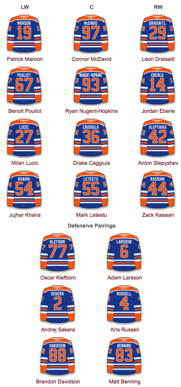 Milan Lucic and Oscar Klefbom didn’t take the morning skate, but Todd McLellan said both will play. They will go with the same lineup as Monday. Cam Talbot starts his league-leading 42nd game.