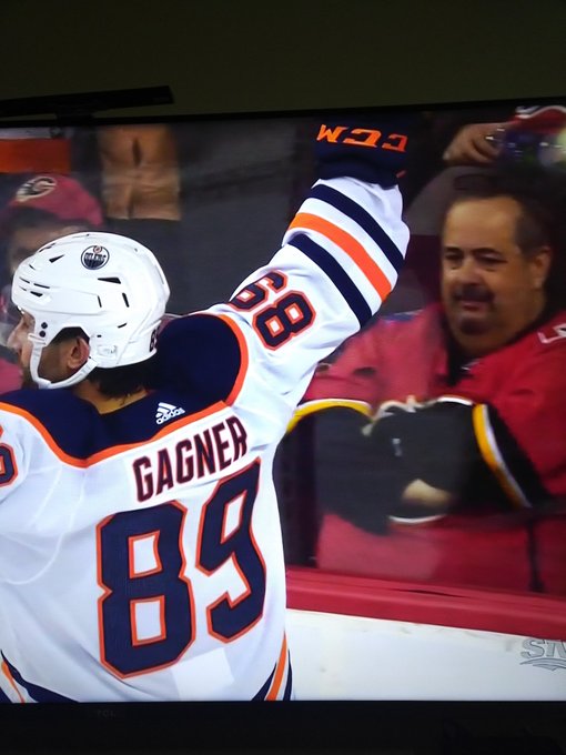 The Flames and Oilers are sharing the same emergency goalie tonight, which is incredibly awkward because that means he now has to fight himself