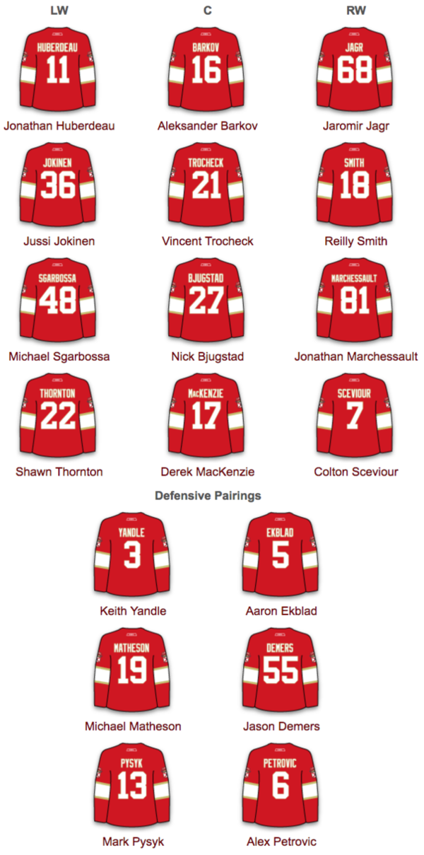 Adam Larsson is out tonight after leaving last night’s game against the Lightning with a back injury in the third period. Gryba will draw back in on the third pair, and Matt Benning will move up in the lineup to compensate for Larsson’s absence.