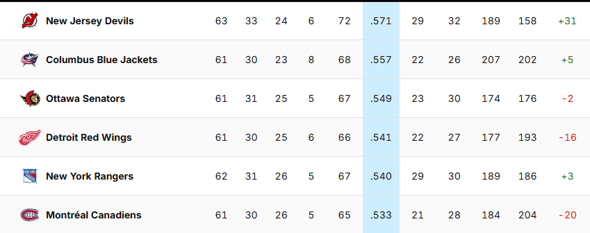New Jersey announced Jack Hughes is out for the season after crashing shoulder first into the end boards earlier this week. His injury, combined with the Devils’ recent play puts the Canadiens right back in the playoff race. All of the teams behind them have games in hand. Ottawa, Detroit and Montreal can only compete for the two Wildcard spots, but Columbus and the Rangers are suddenly in a realistic battle with New Jersey for third in the Metro as well as the two wildcard slots.